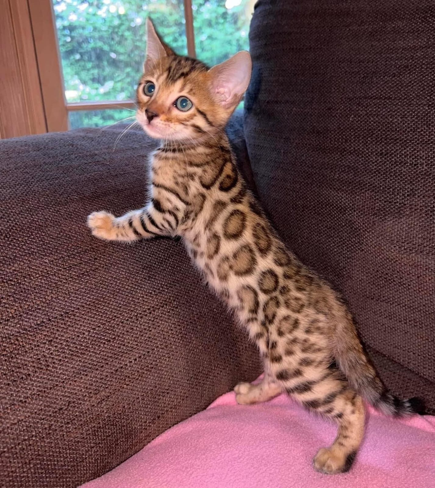 Each kitten listed here has been raised with love, care, and attention in our home, and they’re just about ready to bring joy, comfort, and endless cuddles into yours. Our Bengal kittens are more than just beautiful they’re healthy, affectionate, and full of personality. We carefully document each kitten’s development, and as they grow, we begin to see their unique traits shine through. Some are playful and mischievous, always chasing after a feather toy or hiding behind a couch corner. Others are gentle lap-lovers who will quietly curl up on your chest and purr the moment you sit down. Whether you’re looking for a curious explorer or a laid-back snuggler, this page is where you’ll meet them for the first time.