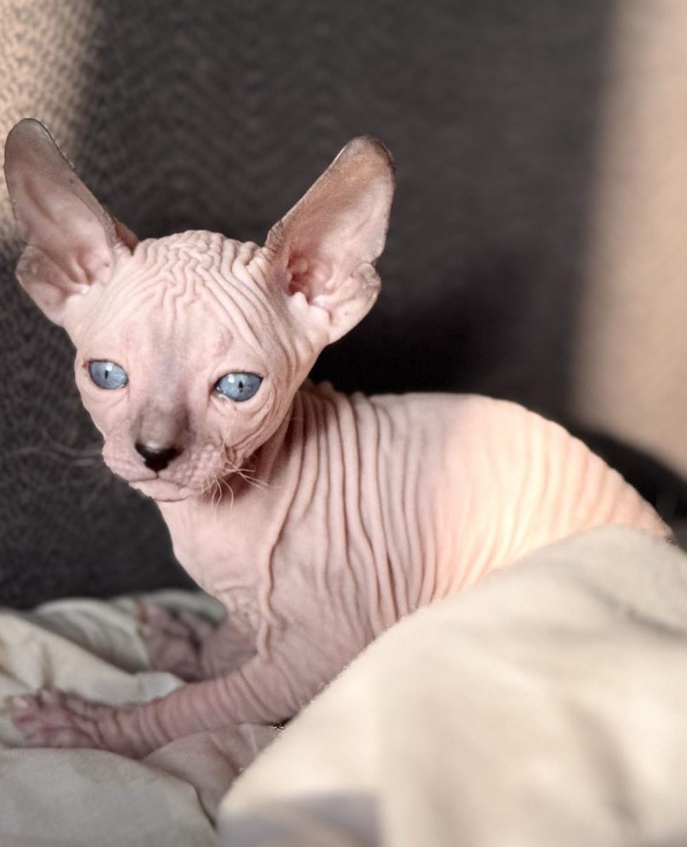 Each kitten listed here has been raised with love, care, and attention in our home, and they’re just about ready to bring joy, comfort, and endless cuddles into yours. Our Sphynx kittens are more than just beautiful they’re healthy, affectionate, and full of personality. We carefully document each kitten’s development, and as they grow, we begin to see their unique traits shine through. Some are playful and mischievous, always chasing after a feather toy or hiding behind a couch corner. Others are gentle lap-lovers who will quietly curl up on your chest and purr the moment you sit down. Whether you’re looking for a curious explorer or a laid-back snuggler, this page is where you’ll meet them for the first time.